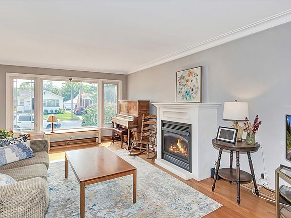 Well-loved and maintained, this charming brick three-bedroom, one-and-a-half-bath Ranch is ready for its next chapter. The first floor features hardwood floors throughout, setting the tone for the inviting spaces within. The living room is highlighted by a beautiful gas fireplace, cove moldings, and new oversized windows that flood the room with natural light. The warmth continues into the formal dining room, where new custom windows create a seamless connection to the kitchen. The kitchen offers marble look countertops, a double sink, a pantry, and enough room for a cozy breakfast table-perfect for morning coffee. Three main-floor bedrooms and a convenient one-and-a-half baths complete this level, blending comfort with functionality. The full basement expands the living space with a partially finished area that has been freshly painted, complete with a laundry area, and abundant storage. Ready for your personal touch, this versatile space offers endless possibilities. Outside, the private backyard is fully fenced and features a patio & garden area with low-maintenance landscaping, creating a relaxing retreat. This home has been thoughtfully cared for and is truly a must-see!
