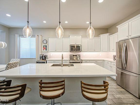 Transition To Your Own Private Oasis In This Exquisite 3 Bedroom Home Plus Den/Office, 2 Bathroom Residence, Perfectly Nestled In Within The Highly Coveted Gated Community Of Rhythm. This Thoughtfully Designed Home Seamlessly Blends Modern Luxury With Comfort, Offering A Spascious Open-Concept Floor Plan Ideal For Both Everyday Living & Entertaining. The Gourmet Kitchen Boasts A Full Stainless Appliance Package, Exquisite Quartz Counters & A Spacious Island With Breakfast Bar & Abundant Counter Space, Flowing Effortlessly Into This Elegant Living & Dining Areas. A Lavish Primary Suite Features A Generous Walk-In Closet, A Spa-Inspired Bathroom With Dual Vanities & Glass-Enclosed Shower. Impeccably Maintained & Move-In Ready, This Home Combines Style, Sophistication & Tranquility. The community has an awesome updated full gym, resort style oasis of a pool area including heated pool & lap pool connected, kids pool, three cabanas with tv's and three firepits, and two bbq stations