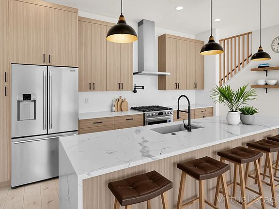 Experience the serene tranquility of suburban living harmoniously blended with modern excellence. Pleasingly nestled in the delightful neighborhood of Collins View. Here, you'll relish the peaceful ambiance, all while enjoying the effortless access to freeways. Enter the main floor to the grand hallway featuring soaring 10ft ceilings, and step into the stunning great room complete with fireplace, large windows, and slider door access to large covered patio for year-round fun, and fenced yard. Kitchen with stainless and gas appliances, pot filler, and gorgeous eat-at island with waterfall edge quartz slab. There are three spacious bedrooms on the upper floor, each designed for natural light. Two feature luxurious walk-in closets for ample storage.