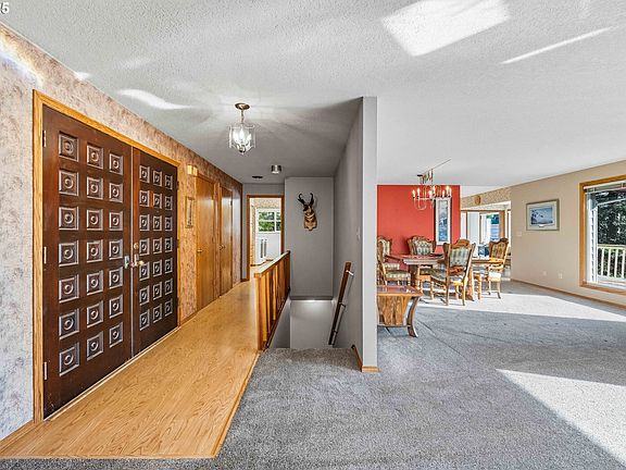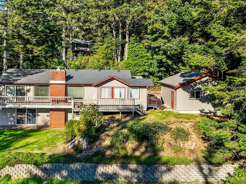 Enjoy end-of-the-road privacy and beautiful bay views from this spacious 4-bedroom, 2.5-bath home. Nearly bay-front, with just a narrow strip of timber-company land between you and the water. The home features a large open living room with a propane fireplace, plus a second wood-burning fireplace downstairs for added warmth and character.Thoughtful updates include new fiber-cement siding, all-vinyl windows, and numerous modern improvements throughout. One bedroom is outfitted with built-ins, making it ideal for a home office or study. Plenty of storage, public water, and a private septic system add convenience to this comfortable coastal property. A great blend of privacy, space, and scenic views—come see why this one stands out.
