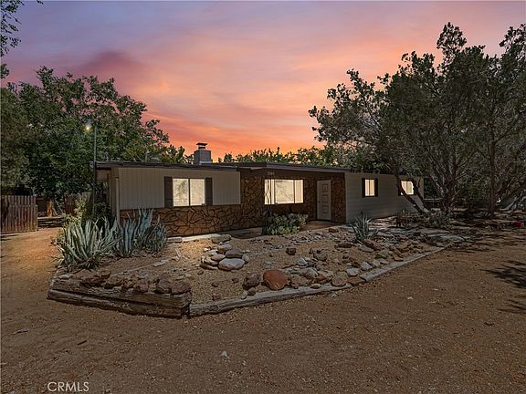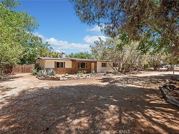 Discover this spacious 2,286 +/- square foot home nestled on over one acre of land, offering an idyllic and private park-like setting. Recently updated, this 4-bedroom, 2-bathroom residence boasts new interior paint and carpet throughout, with a refreshed kitchen featuring new formica counters, painted cabinetry, and stainless steel appliances. Upon entry, a generous open living room with a charming brick fireplace welcomes you, seamlessly connecting to the kitchen and an expansive enclosed patio. This versatile great room is perfect for family gatherings or entertaining guests. The home's split floor plan places one bedroom opposite the living area, with the remaining three bedrooms on the opposite side. Outside, an oversized enclosed patio leads to a large back patio enveloped by mature trees, ensuring unparalleled privacy. Along one fence line, a series of storage sheds offer ample space for storage needs. The shaded area off the back patio is ideal for a gazebo or outdoor kitchen, complemented by the natural cover provided by the large trees. The property extends to the rear, providing plenty of room to potentially add a detached garage, barn, or additional dwelling (subject to necessary permits). Centrally located in Hesperia with convenient commuting access, this property offers a wonderful opportunity to establish your ideal home. This listing captures the essence of spacious living in a serene, private setting, perfect for both relaxation and entertaining.