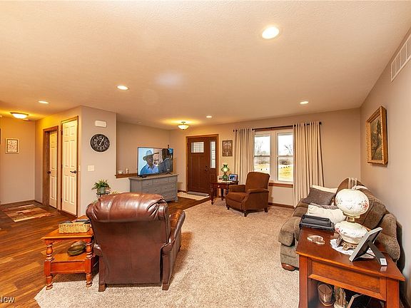 Nestled on 3.3 picturesque acres, this almost-new 2021-built ranch offers the perfect blend of modern luxury and peaceful country living. Designed with exquisite custom woodwork, this 3-bedroom, 2-bathroom home showcases custom trim, luxury vinyl flooring, granite countertops, and stainless steel appliances. The heart of the home is the spacious kitchen, featuring a large island, custom cabinetry, and an open layout perfect for entertaining. Relax and unwind on either the welcoming front porch or the serene back porch, where you can take in the beauty of your sprawling property. The full basement is already plumbed for an additional bathroom and offers 1,000+ square feet of potential living space, ready to be finished to fit your needs. Home is equipped with a well filtration system to get the best tasting water. Experience the best of modern craftsmanship and rural charm in this stunning home. Don’t miss this opportunity—schedule your showing today!