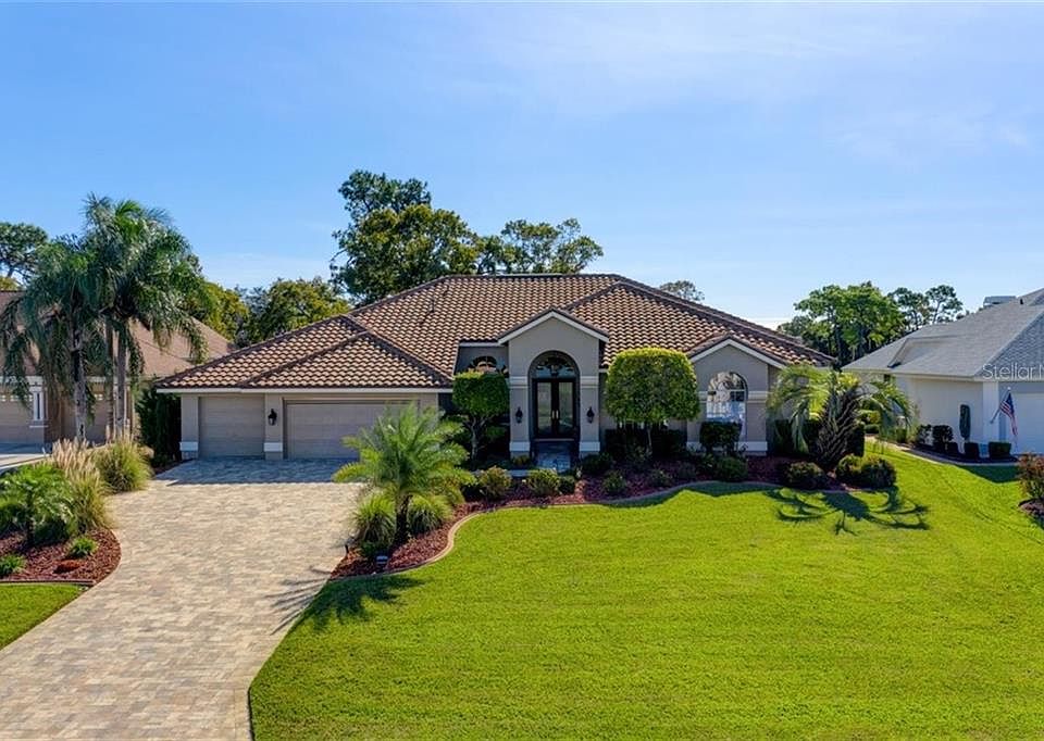 Truly spectacular executive pool home on the golf course. 4 bedrooms+den/3.5 baths/3 car garage. This 1993 Arthur Rutenberg Bimini IV has been extensively renovated from the new tile roof, paver drive/walk/patio/lanai area, new pool cage, new Pella double entry doors, new hardwood floors in living/dining/den/master bedroom, 20 inch porcelain tile, stunning new gourmet kitchen with Thermador appliances, huge granite island, cherry cabinets, butler's pantry, new master bath with custom vanity, shower, cherry cabinets, quartz counters, new stone fireplace in family room, all new window treatments with remote control blinds, new storage room in attic with heat and A/C, exterior and interior newly painted. This is an immaculate, move in ready home. 3459 living sq. ft., 4537 total sq. ft.