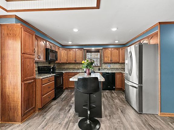 The OPEN HOUSE for Friday, April 4 has been canceled. If the country is calling you, check this out! 4 BR, 2 BA home features main floor bedroom w/vaulted ceilings, full bath & his & hers walk in closets, recently renovated kitchen w/center island & 20x22 flex space w/separate entrance previously used for day care. The flex space is framed for a garage door if you desire an attached garage. 26x64 garage is split with garage space and a wood shop insulated/sheeted & heated, and new steel roof in 2022. The 40x60 shed was added in 2023. North side is sheeted/heated & offers 14' side walls. Shed doors are 12x10 and 16x10. Bonus party space w/kitchen, office space, 3/4 bath and 6x12 deck! Backyard gazebo. 7.5 acres with 2nd driveway to 93rd Street & trails throughout.