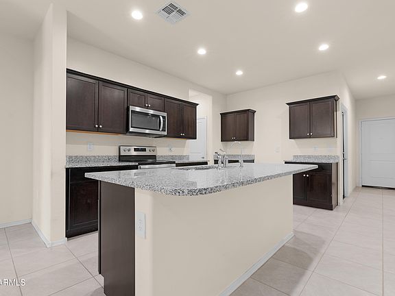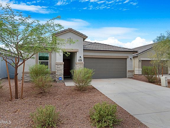 This fantastic DR Horton home is only 3 years old and ready for its next owner! Located in the quiet community between San Tan Valley and Florence is this 3-bd, 2-ba stunner with stacked stone accents on the front plus mature landscaping for major curb appeal. Step inside where you will find an updated kitchen with classy granite countertops, dark cabinets and stainless steel appliances. Proceed to the open concept great room and dining area. From there you'll find a spacious primary bedroom with ensuite and large walk-in closet which is split from the other two guest bedrooms. Step out to the covered patio to view the ample-sized backyard for gatherings or just to enjoy by yourself. This is your chance to make homeownership a reality! Plus get 0.50% closing credit w/preferred lender. Bonus for the buyer! Seller to provide a complimentary professional installation of up to 100' of Govee Permanent Outdoor Lights Pro (valued at approximately $1,500), to be completed within 30 days after closing. A beautiful upgrade to enjoy right away in your new home!