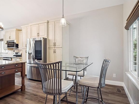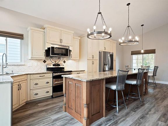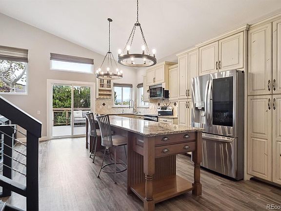 This beautiful split-level home offers an open floor plan with numerous custom qualities. Begin your tour by enjoying the mature landscaping trees, shrubs and bushes throughout the front and back yard. Make memories swinging on the front porch while sipping on your favorite drink. As you enter the front door, your eyes will be drawn upward towards the vaulted ceiling, openness and warmth of this wonderful home. The main, lower and basement levels all feature lovely laminate flooring! The lighting fixtures add character throughout, along with custom hand rails w/vertical wire cables. This kitchen is so unique w/antique cabinets and pull-out shelves throughout. A special peek-a-boo mountain view can be seen at the kitchen sink! Enjoy the stainless appliances including the instaview French door refrigerator w/dual ice maker! Double oven; instant hot water faucet; glass rinser at the kitchen sink, granite eat-in island while enjoying conversations and entertaining. There's plenty of meal prep space! Step outside the sliding door overlooking an upper and lower deck for morning or evening gatherings or quiet reading time. Enjoy your personal golf putting green to sharpen your skills! Back inside on the lower level, the family room is large enough to accommodate large furniture & BIG screen TV needs. The upper level bedrooms feature a primary with a custom wood closet door and accent wall. The walk-in shower is fabulous with timeless and tasteful tile work and double sink vanity. Two additional upper level bedrooms with a Jack and Jill bathroom too! Need additional living space? Don't miss the bonus basement room with garden level views to the backyard! More custom woodworking on the barn door to the laundry room with a big, bright window & sunlight! The two car garage has epoxy flooring + drywall & is even painted! Four rec centers nearby! Minutes to C-470, and the Town Center for shopping. Hurry to see this one! You will want to call it home as soon as possible!