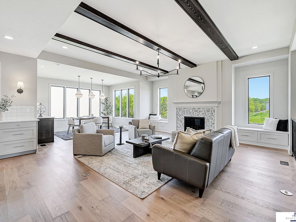 Welcome to this stunning custom-built 4BR, 4BA walkout ranch by Schwinn Homes—where luxury meets function. Featuring engineered white oak floors, 9’ ceilings (11’ in great room), and custom maple cabinetry with soft-close drawers throughout. The gourmet kitchen includes a large quartz island with gas cooktop, walk-in pantry with prep sink and beverage fridge, plus a study area—ideal for entertaining. The mudroom connects to a spacious laundry and a custom walk-in closet in the primary suite. Enjoy heated bathroom floors, and a dual-head walk-in shower. Step onto the covered back patio directly from the kitchen to take in serene wooded views. Located on a private lot backing to a wooded commons area, this home offers peace, privacy, and exceptional craftsmanship. Schedule your showing today!