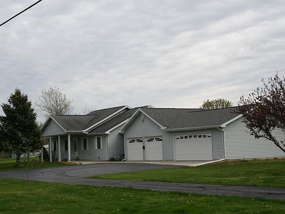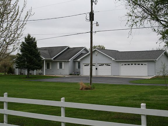 Pleasing single story on 1.8 acres w/ 4 garage attached garage & MORE! This is a great home! Open floor plan w/ a dramatic vaulted ceiling you'll love! Spacious kitchen w/ plenty of cabinets, loads of countertop space, appliances, snack bar & walk-in pantry. It's open to the generous dining area that adjoins the family room/4 seasons room wrapped in glass overlooking the peaceful back yard! 31 ft master BR has walk-in closet & private Master bath. It could be divide back to 2 bedrooms if de sired. Main floor laundry. 43 ft basement rec-room with high ceiling PLUS an office PLUS a 3rd bedroom! THERES MORE! Attached 4 car garage w/ built-in booth, Gladiator Storage equipment & more! PLUS separate detached garage too! Geo-thermo heat! It's a dream w/ many other extras & delights!