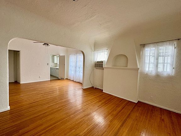 Large and bright 1bed apartment with Spanish charm. Original earthy hardwood floors throughout. Living Room is open and wide with tall windows that offer plenty of natural light that bring the room alive. The room arches into the dining area large enough for a formal dining table. The kitchen has creamy western style cabinets that have plenty of cupboard space and has backdoor access to the exterior. The bedroom is bright with original windows. The hallways feautures built in closets for added storage. 1 parking space included. Washer/dryer hook ups inside the unit. In excellent location near shops and great restaurants and a new dog park. **Pets will be considered with additional deposit**