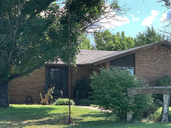 Long ranch style home with plenty of room to spread out! Ready to move in. Storage is evident in all the built-in cabinetry and closets. W/D hookup is in the basement. AC/Heatpump, brand new garage door, newly painted exterior and in all bedrooms and great room. Nice large fenced in back yard. There is a potting shed in the back yard, as well. House is past city limits which helps with taxes. There is a great fishing pond on the spacious 9 acres with a black-top drive. We love the beautiful views from every room in the house!
