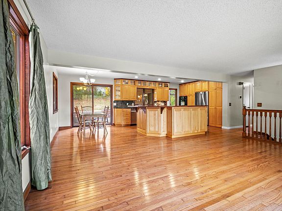 This inviting split-level home is nestled in a peaceful cul-de-sac, offering an ideal setting for all. The main level features three bedrooms, including a primary suite with a full bathroom with in-floor heat for added comfort. The updated kitchen boasts maple cabinets with pull-out shelves, granite countertops, newer appliances, and a hidden laundry area, making daily routines seamless. A bright family room with vaulted ceilings and a fireplace provides ample space for gatherings, with views of the fenced backyard and direct access to the deck—perfect for outdoor grilling and entertaining. The lower level includes a second family room with a wet bar and wood stove, ideal for movie nights or play. The heated garage comes with a bonus workshop, offering extra space for hobbies or storage. With many updated windows and a new roof, this home is move-in ready, and perfectly placed being close to Shattuck Saint Mary's, the Minnesota State Academies for the Deaf and Blind, and District One Hospital.