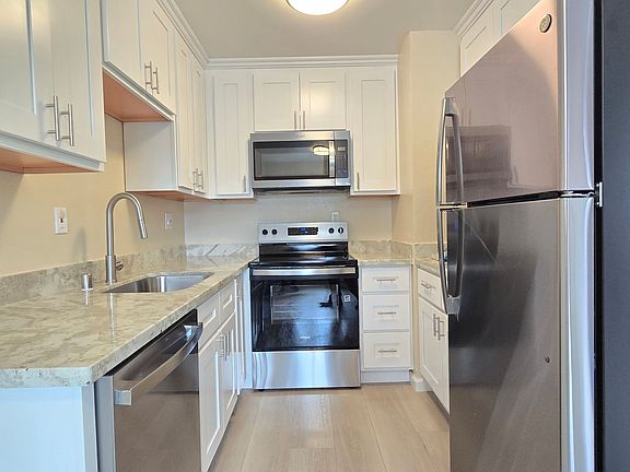 935 Azure St #09, Sunnyvale, CA 94087 (Saratoga-Sunnyvale/Remington) Spacious upstairs apartment with 1 bedroom, 1 bathroom, and a 1 car carport. The apartment has been completely remodeled featuring a new kitchen, new bathroom, new wood flooring, fresh paint, air conditioning, a walk in closet, and new window coverings. The kitchen has white cabinets with granite countertops, and stainless steel appliances including dishwasher, stove/oven, microwave, and fridge.