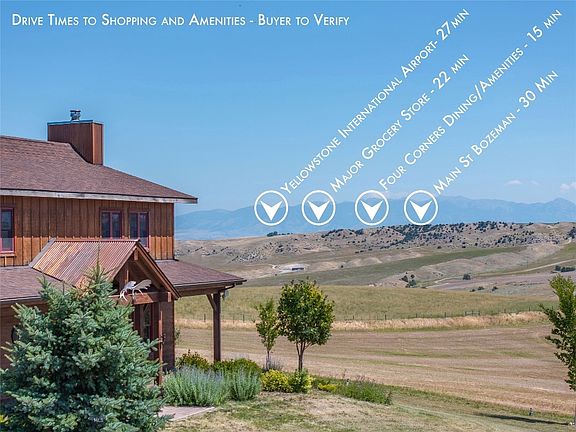 Situated on 20-acres and surrounded by 360 views of mountain ranges, 935 Bates Rd offers a rare slice of the authentic Montana lifestyle. BOZEMAN SCHOOL DISTRICT – buyer to verify. Tucked in amidst large acreage agricultural grounds, this custom 3600 sq ft farmhouse-style home was built in 2015 and offers excellent opportunity for watching wildlife, everchanging western skies and star-gazing – all within 15 min of shopping and amenities in Bozeman. End of road location in the Ruby Mountain Estates neighborhood, featuring luxury level homes and community-maintained roads. A wrap-around covered porch leads into to the vaulted living room with panoramic stacked double windows and rock surround wood fireplace. Rustic fixtures and special touches pay tribute to the ranch history of the area. T&G ceilings, wood trim, wide plank wood flooring, wood cabinetry with floating shelving. Concrete counters – stainless appliances. Two spacious pantry areas and laundry with plentiful storage. Main floor features all solid surface flooring – the restful primary suite on main features exterior door access, walk in closet, large bath with an eclectic Tarter water bin soaking tub, tin work tub sinks with concrete counters and tile surround shower with glass euro door. Upstairs landing makes a great a den/2nd living room area. Two spacious beds with excellent natural light. Shared hall bathroom with tiled shower and reclaimed steel and glass case vanity. A gallery hallway leads to a large bonus/recreation/bunk room with attached tiled ¾ bath that can be utilized as gathering place, extra sleeping space/bedroom, game room, etc. An efficient propane boiler/radiant heat keeps it cozy in winter. The 2-car garage features covered access, dog kennel and wood storage. Easy to maintain land features irrigation around the house site with gravel garden beds. Additional land has been dryland hayed annually with decent production of bales. Patio and back deck on the north facing side of the house offer a wonderful space for entertaining with expansive mountain views. Deer and other wildlife frequent the property. Guest house and keeping of horses and other livestock are allowed by covenants – buyer to verify. 15 minutes to shopping, dining and amenities in Four Corners, 25 minutes to Montana State University, 1 hour to Big Sky. Just minutes to the blue-ribbon fly-fishing waters of the Madison River, State recreation land and forest service trails. Don’t miss the 360 VR Matterport Tour.