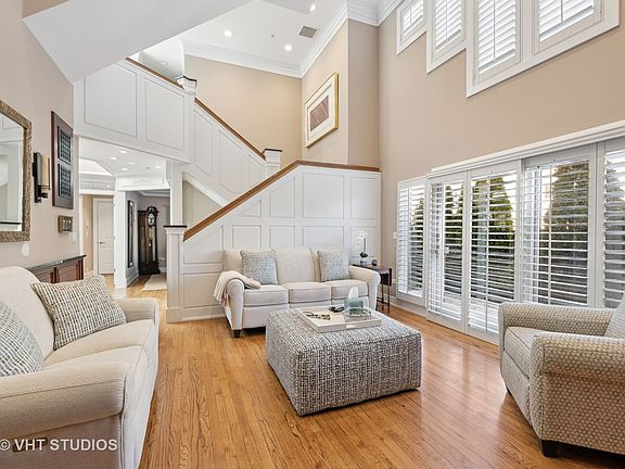 This stunning remodeled townhouse in downtown Highland Park is full of upgrades and style. Hardwood floors and wooden plantation shutters run throughout, creating a warm, inviting atmosphere. The expanded eat-in kitchen features upscale stainless steel appliances, under-counter lighting, warming drawer, refrigerator drawer, and a spacious island, perfect for cooking and entertaining. The bright, two-story family room includes a wet bar, wine fridge, and built-in cabinetry, while the formal dining room with a tray ceiling adds a touch of elegance. The luxurious primary suite upstairs offers custom built-ins, a walk-in closet, and a spa-like bathroom with heated floors and towel rack, double vanity, oversized shower, and separate tub. The second bedroom, currently an office, and a newly upgraded bathroom completes the second level. On the third floor, two spacious bedrooms and a hall bath offer plenty of room. The completely renovated lower level features a guest suite, new bathroom, large recreation room, and laundry area. Enjoy the beautiful outdoors from the brick paver patio. The attached two-car garage and exterior utility shed add convenience. This home is ideally located just steps from downtown restaurants, shopping, trains, and parks- everything you need right at your doorstep.