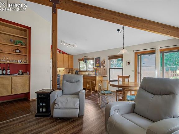 Located in the highly sought-after Cheyenne Mountain area, this charming 3-bedroom, 2-bathroom, 2 car garage home offers incredible mountain views and stunning landscaping. The home boasts a well-maintained yard, perfect for outdoor relaxation and entertaining. Inside, you'll find a comfortable layout with plenty of space for living and dining. The kitchen is well-equipped including a gas stove, SS appliances, and opens to the main living areas, creating a great flow for everyday living or hosting guests. Other room in basement could be converted into a 4th bedroom by adding a closet and door. Newer upgraded Anderson windows. Other features include wood beams through out the main and upper level rooms, built-in bookcases in livingroom surrounding the gas fireplace, remodelled bathrooms, storage shed, and a huge oversized garage! BASEMENT HAS BEEN RECENTLY REMODELLED WITH NEW CARPET, BATHROOM TILE, AND PAINT. This home is in a prime location, close to parks, shopping, restaurants, and schools. With its unbeatable location and gorgeous surroundings, this property is a must-see! Don't miss the opportunity to make this home yours. Schedule a viewing today!
