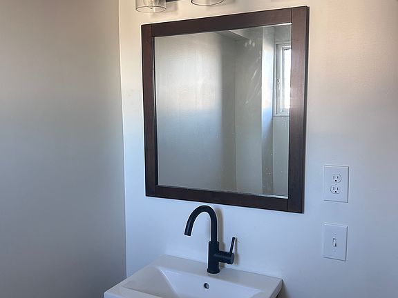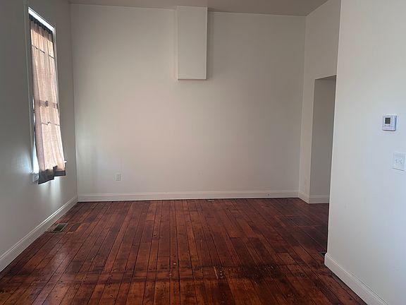 This beautifully updated home features a modern kitchen with stainless steel appliances, open shelving, and refinished wood countertops. The main level offers spacious living with tall ceilings and original hardwood floors that give the home character and warmth. Upstairs, both bedrooms include new lighting, fresh paint, and plush carpeting. The full bathroom is completely updated with a modern vanity and stylish fixtures.