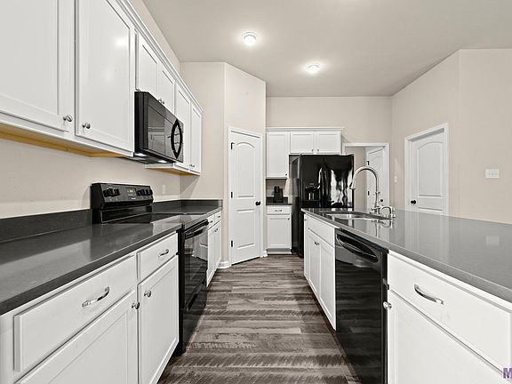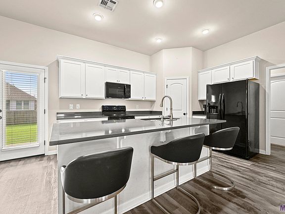 This home features a contemporary 4-bedroom, 2-bathroom layout with under mount sinks throughout the kitchen and baths. A kitchen island with a breakfast bar overlooks the dining and living rooms, complemented by luxury vinyl plank flooring that seamlessly connects these spaces and extends into the hallway and wet areas. The master suite boasts a garden tub, separate shower, double vanity, and a spacious walk-in closet. Additional highlights include recessed lighting, a tankless water heater, and a brick and stucco Acadian-style exterior. The property includes a fully sodded yard with a landscape package, durable 30-year shingles, and various upgrades such as a cabinet package and quartz countertops in the kitchen and bathrooms. This home offers a blend of comfort, style, and functional upgrades, making it an ideal choice for modern living. ASK ABOUT 100% FINANCING !