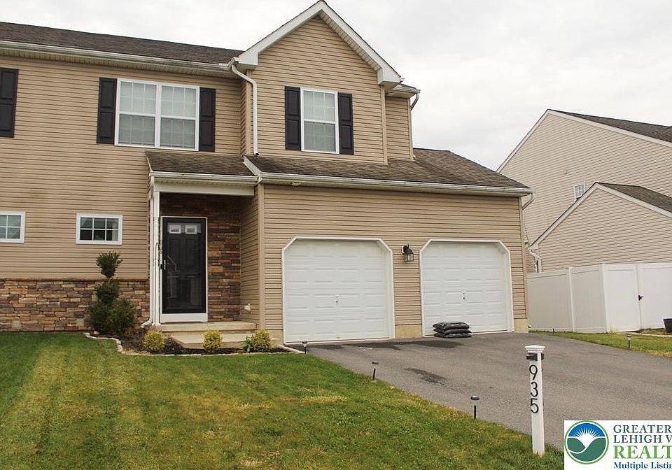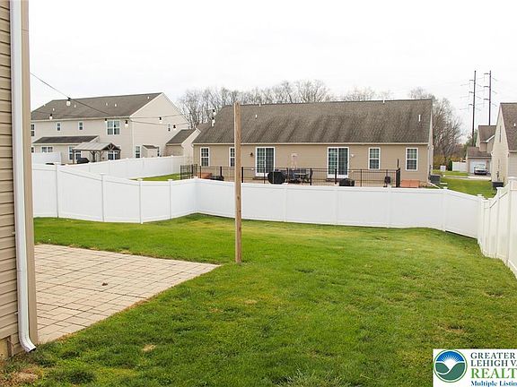 Starting with a spacious open-concept living room, dining area, and kitchen, this home offers a great flow for everyday living. The first floor also includes a half bath and laundry room for added convenience. The kitchen features new stainless steel appliances and granite countertops.On the second floor, enjoy a Primary bedroom with a large walk-in closet and full bath, along with two additional bedrooms and another full bath. The home also includes a 2-car garage and a full basement for storage or future finishing. Relax on the stone patio with beautiful lighting in your fully fenced yard—perfect for mornings or evenings. PLUS, no HOA! The house is conveniently located near the Lehigh Valley International Airport with the Airport Shopping Center near by, along restaurants!