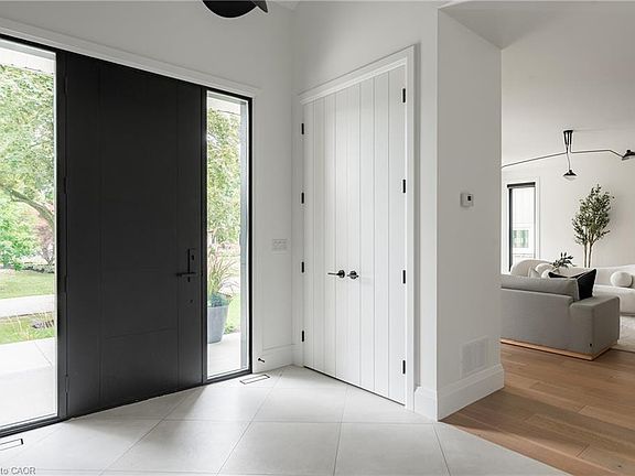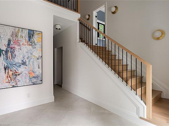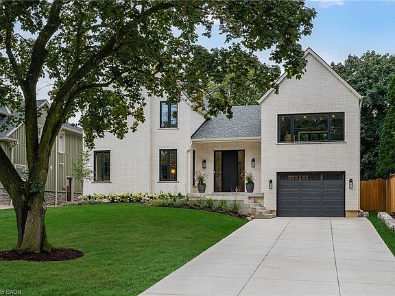 Nestled on a private cul-de-sac in the prestigious LaSalle neighbourhood, this luxurious custom home, rebuilt & re-imagined in 2024 by Interface Construction, integrating part of the existing foundation, offers 3,481 sq. ft. of finished living space above grade. Just a short walk to the Burlington Golf & Country Club and minutes from Lake Ontario and LaSalle Park, the location is as desirable as it is convenient. Step inside to a grand foyer with soaring vaulted ceilings leading into the open-concept living and dining areas. The living room is anchored by a Trumeau fireplace, creating a warm and inviting ambiance, while the dining room with decorative nook is perfect for hosting. The chef’s kitchen combines function and flow, featuring a large island, premium appliances, custom cabinetry by Imatree Cabinets & Woodworking, and seamless connection to both the dining room and the family room. With vaulted ceilings, expansive windows, and views of the rear yard, the family room is filled with natural light. A mudroom with powder room access and a rare drive-through garage entry complete the main floor. Upstairs, a unique recreation room adds versatile living space, ideal as a fourth bedroom, lounge, media room, office, or homework hub. The upper level also includes a sitting area overlooking the foyer, a serene primary suite with vaulted ceilings, custom cabinetry, spa-like 5-piece ensuite, and walk-in closet, plus two additional spacious bedrooms with a shared 4-piece bath. Designed for both relaxation and entertaining, the backyard offers two expansive concrete patios, professional landscaping and mature trees for privacy. From its elegant interiors to its private outdoor spaces, this home was designed for both everyday living and unforgettable entertaining.