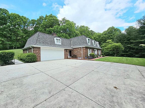 French Brick Country style 4 BR, 2.5 BA home, with over 4500 finished square feet, situated on a little over 4-acre lot. Well-built house with Anderson insulated windows. Newer heat pump on the main above ground floors with a dual fuel oil unit in the basement. Great detail was used in decorating this home with designer choice Schumacher brand wallpaper which has been used in the "White House." Large living room, large den, and nice size bedrooms. Large finished basement that could be updated to your liking with both outside and inside entry. Plenty of space indoor and out for entertaining. Private setting with an abundance of wildlife. Plenty of storage space with 2 outbuildings and large attic storage. Large concrete driveway. Note: Some of the images in the listing have been virtually staged to help showcase the true potential of spaces in the home.