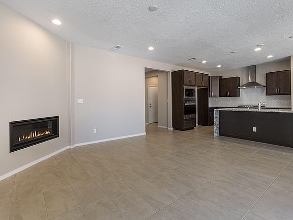 Ready Now! This stunning Brownstone floorplan boasts an inviting open concept design, perfect for modern living and entertaining. The living room features a cozy fireplace, creating a warm and welcoming atmosphere. You'll love the seamless flow from the living room to the dining area and the gourmet kitchen, which showcases a breathtaking waterfall edge island. Step outside through the double sliding glass doors to an extended covered patio, ideal for outdoor gatherings and relaxation. The large laundry room offers ample storage and convenience, making household chores a breeze. Retreat to the owner's suite, where you'll find a charming bay window that fills the room with natural light. The luxurious suite bathroom includes a beautifully tiled walk-in shower, adding a touch of elegance.