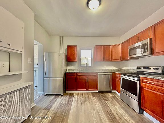 Totally renovated with FIVE bedrooms right on Mulberry Street! This beauty is in a sought after location in the Hill Section - making it close enough to walk to the hospitals and schools while retaining the views that let you see for miles. It features a one car garage as well as a fenced in yard. Enjoy a fun NEPA summer in the large backyard, or even a cold winter, as you'll be cozy and worry-free with your newer furnace, windows, electrical, etc. Also features a modern renovated kitchen, a fresh paint job, and new flooring. FHA / VA Welcomed!, Baths: 1 Bath Lev 2,1 Half Lev 1, Beds: 2+ Bed 2nd,2+ Bed 3rd, SqFt Fin - Main: 759.00, SqFt Fin - 3rd: 324.00, Tax Information: Available, Dining Area: Y, Ultra Modern: Y, SqFt Fin - 2nd: 621.00
