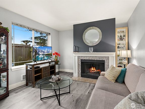 Step through the front door and instantly feel at home. Natural light fills the space, highlighting the fresh updates—from sleek quartz countertops and stainless steel appliances to the rich flooring and modern lighting that ties it all together. The open layout flows easily into the spacious living area, leading you to a private, fully fenced yard—your own little retreat, perfect for morning coffee, pets, or summer BBQs. The oversized walk-in shower with a built-in bench adds a touch of luxury to your daily routine. With no stairs to worry about, covered parking, extra storage, and a well-managed, gated community close to shops, transit, and Seattle—this one checks all the boxes.