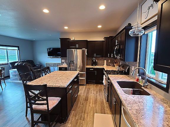 Beautiful Ranch Style house with 9 foot ceiling throughout the main floor located in the Sleepy Hollow area. The kitchen has a custom backsplash with under cabinet lights. Off the living room walkout onto a covered deck that has a natural gas hookup and a view. The main floor has a master bedroom with a ¾ bath and walk in closet. The second bedroom has a large closet with lots of storage. The basement has two bedrooms and one of those bedrooms has a large walk in closet. From the basement family room enjoy lots of natural light or walk out into the private backyard and sit on the patio. The backyard faces east providing great shade for the hot summer days. The yard has a fence, sprinkler system, concrete curbing, and a garden shed that stays with the property. The house has a two stage furnace, spray foam insulation, air exchanger, and natural gas water heater. You will have lots of addition storage in the large three stall garage that is finished and heated. The side of the garage with the 16’ door is tandem deep giving you space to park your boat, motorcycle, four-wheeler, or use it for work space. Seller is willing to work with the buyer’s realtor
