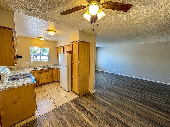 Plenty kitchen cabinetsCeiling fans in bedroomsFaux wood blinds
