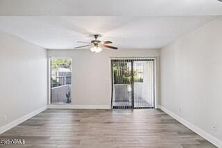 Welcome to this beautifully updated rental end unit in Scottsdale Hacienda Condominium! With 2 beds & 2.5 baths, it tastefully blends modern comfort and style. Enter to find a seamlessly flowing living & dining room! Neutral paint creates an inviting atmosphere, complemented by wood-look flooring throughout. The kitchen boasts SS appliances, granite counters, raised panel cabinetry, and a breakfast bar. Both bedrooms await upstairs! The main bedroom includes an attached balcony and a full bathroom with dual sinks. You'll love the private patio, where you can unwind or enjoy BBQ! Take advantage of the two community pools one just right behind the patio, plus a relaxing spa & a dog park. Excellent location close to shopping, dining, golfing, and nightlife. Don't miss this great opportunity!
