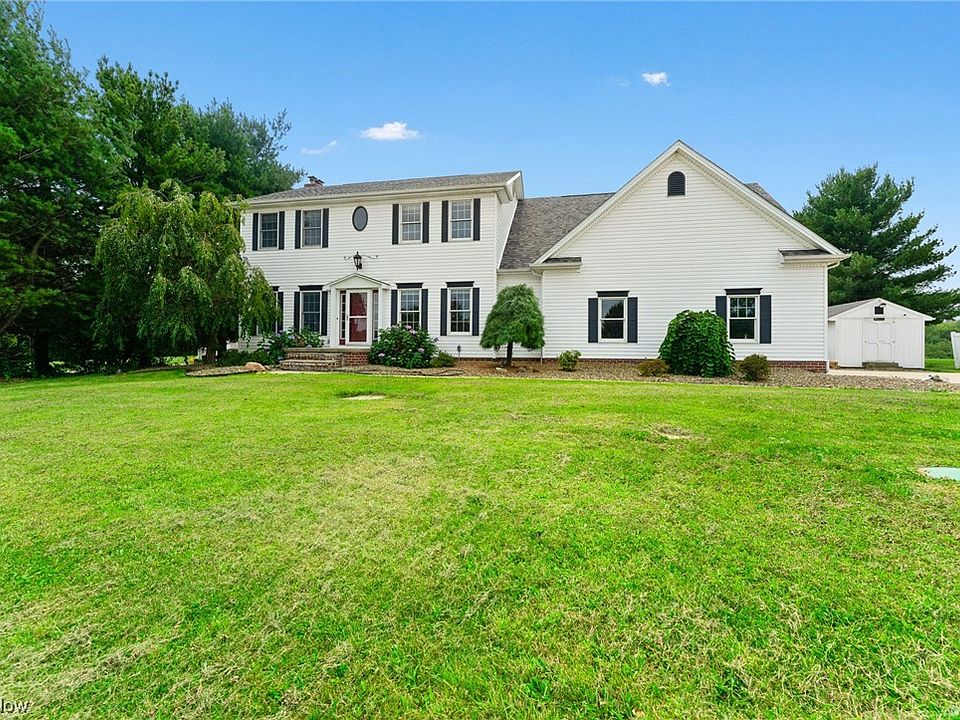 Spacious two story home on 1.5 acres in South Range Schools near The Lake Club. The main level of this home plays host to an eat in kitchen with cherry cabinets and granite counters; a large living room with fireplace; a formal dining room; an office with double door entry; a welcoming foyer, and a half bath. A sprawling master bedroom with updated master bath and giant closet, three additional bedrooms, and two additional full baths comprise the second level. A full basement provides ample storage, as well as, a recreation room, a workout room, a laundry area, and a half bath. Exterior features include a three car attached garage, rear covered 20 x 20 deck, shed, and above ground pool. The first level exemplifies quality with hardwood floors throughout. Home has newer roof, furnace, air conditioner, hot water tank, and shed. Call today!!