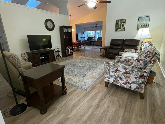 Centrally located in the highly sought after gated community of South Oaks. Resort lifestyle (not a 55+ community) with low HOA $112 monthly includes: lawncare, pool, hot tub, sauna, clubhouse with library, pool/dart room, pickleball/tennis court, RV parking at no additional cost! This must see spacious floor plan with 3 bedrooms/2 bath has been updated and meticulously maintained. Peace of mind features: underground utilities, impact rated windows & skylights, renovated kitchen and baths, roof 2024, gutters, new front door, garage door and flooring. Home also offer a patio with sun setter awning. Minutes from restaurant, hospital and the beach.