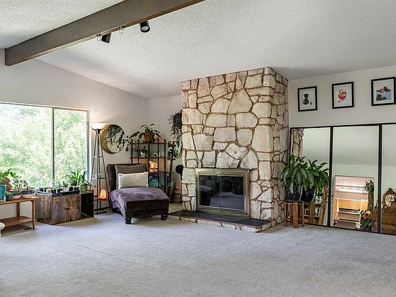 MLS# 269080 5 bedroom, 3 bathroom mid century modern home on Pioneer Hill. Main floor offers large living room with vaulted ceiling, wood burning fireplace, lots of natural light, kitchen / dining area with access to the back deck, primary bedroom with en-suite, 2 addition bedrooms, a full bathroom and laundry area. Skylights in the hall and staircase add additional natural light. On the lower level you will find a spacious family room with a gas fireplace, access to the back yard, 2 bedrooms, 3/4 bathroom, and hobby/storage space. There are so many versatile spaces in this 3056 sq ft home. Outside enjoy the large covered patio in the front, private back yard, 2 car garage, fruit trees and so much more!