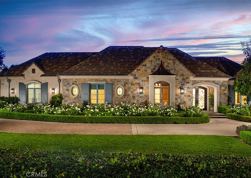 A Rare 10,422-Square-Foot French Estate in Prestigious Santa Anita Oaks, Set within Arcadia’s esteemed Upper Rancho Area of Arcadia, this extraordinary French-inspired estate presents over 10,000 square feet of rare single-level living on nearly an acre of beautifully landscaped grounds. Designed by the reputable Robert Tong and built by Mur-Sol Construction, this residence embodies timeless elegance, modern luxury, and superior craftsmanship. Behind its stately façade behind multiple large hedges and gated circular driveway, interiors unfold with grand proportions, soaring ceilings, and exquisite detailing throughout. The magnificent family room, crowned by a Cathedral High coffered ceiling and illuminated by a Gold Czech crystal chandelier, serves as the dramatic centerpiece of the home. Formal living and dining rooms offer refined settings for entertaining, while a richly appointed paneled study, an expansive home theater, and a private fitness room with sauna provide a wealth of lifestyle amenities. Throughout the home, custom designer draperies add sophistication and warmth to every space. At the heart of the estate, the gourmet kitchen impresses with dual marble-topped islands, professional-grade appliances, and bespoke cabinetry, paired with a fully equipped secondary wok kitchen for seamless entertaining. Six ensuite bedrooms, including a serene and extremely large primary suite with a spa-inspired bath of imported marble and European finishes, provide privacy and comfort for family and guests. The estate’s outdoor setting is equally remarkable, designed as a private resort retreat. Mature oak trees and lush landscaping frame a vast grassy lawn, an entertainer’s saltwater pool and spa, and an elegant stone terrace with outdoor fireplace. A circular driveway and a four-car attached garage ensure both prestige and convenience, with parking capacity for more than ten additional cars on the grounds. Enhancing the property’s value and efficiency are paid-off solar panels, offering sustainable living without compromise. Distinguished not only by its scale but also by its rare single-story design, this residence offers a lifestyle of enduring elegance, comfort, and exclusivity—all just moments from Arcadia’s award-winning schools, parks, dining, and cultural destinations.