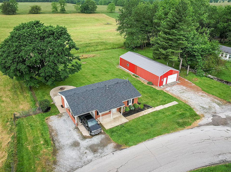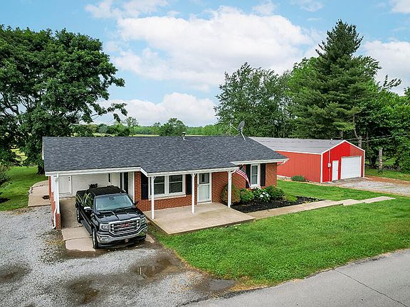 Very comfortable brick home in a relaxing rural location. Large eat-in kitchen and living room with 2 bedrooms and bath on the main floor. The basement has a nice family room with another room that could be used as a third bedroom. The extra large detached garage/workshop and the house have new roofs from 2022! You will enjoy the view of rolling fields from the poured concrete patio!