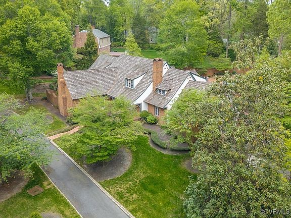 Where do I begin to describe this storybook Tudor cottage? Built in 1986 by a well known local designer, this home oozes charm, character, and craftmansship, and all of the romantic details you would expect to find in an English Cotswold home. Before you cross the threshold, you will be blown away by the impressive and extensive brickwork which includes storybook extruded mortar brick construction, curved garden walls, walkways, and over 2,500 square feet of tiered brick patios, stairways, and pool surround. Adding to the charm are the timeless cedar shake roof, diamond lattice windows and extensive rose gardens. Inside is a room sized 2-story center foyer with marble tile flooring flooded with light. From the Foyer you will step down to an elegant Living Room with a grand fireplace, floor to ceiling paladian windows and 4-panel French doors leading to a lovely private walled side patio. For more intimate evenings, the sophisticated wood paneled Library offers privacy for work or reading and has built in bookshelves,a fireplace, and a gorgeous coffered ceiling with decorative molding. There is a formal Dining Room overlooking the gardens and pool, a large Kitchen with granite kidney shaped island, double oven, extensive cabinetry and sleek granite counter space. The exposed brick arched stove enclosure, recessed terra cotta wine rack, and decorative metal tile ceiling reflect more old world details of this home. The Primary Bedroom is on the 1st Floor with large walk in closet, dressing room, and large bath with marble floors, leaded glass window, double vanity and sunken tub. Upstairs is a large landing overlooking the pool and gardens and 4more over-sized bedrooms and 2 full baths. Two of the bedrooms are en-suite with the 3rd and 4th accessing a bath fromt he hallway. There is excellent storage available in the 2.5 car garage. Other features include a circular driveway with ample parking. The outdoor living is unparalled with roses, azaleas, hostas, hydrangeas, Japanese maples, boxwoods, and camellias