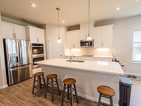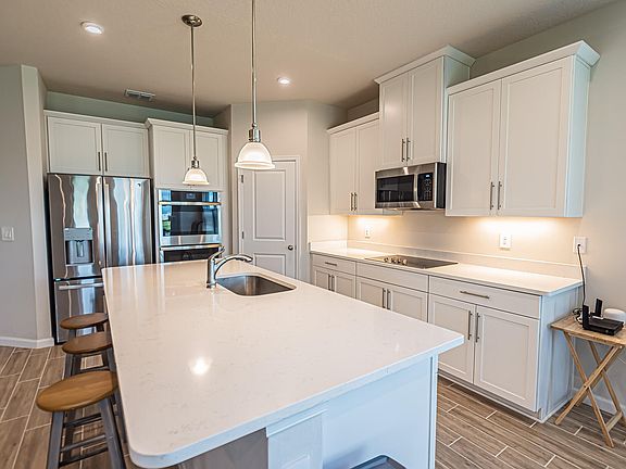 Central Park! this stunning 3-bedroom, 2.5/2 Den & 2nd floor Flex Room lakefront home is move-in ready. Upgraded kitchen features quartz countertops, a cooktop, double oven, and stainless steel appliances. The open-concept living area offers breathtaking lake views and abundant natural light. The flexible floor plan includes a home office with elegant French doors, easily convertible into a 4th bedroom. Upstairs, a versatile bonus room with a half bath provides endless possibilities. High impact windows & doors. Spacious fenced yard with screened and covered lanai are perfect for relaxation. Inspiration Park, a 10-acre recreation complex, offers community pool, dog park, play areas, low HOA dues. Near I-95, shops, dining, Tradition Towncenter, medical minutes away! par, play areas, and low HOA dues. Conveniently located near I-95, shopping, dining, Tradition Town Center, and medical facilities.