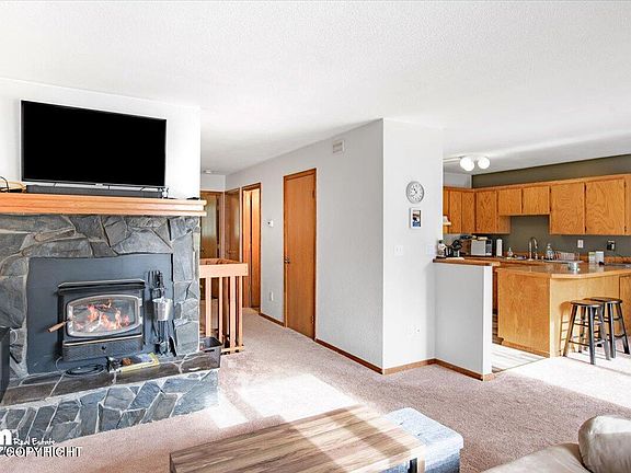 Townhouse style Eagle River home in beautiful Eaglewood with 3 bedrooms and a bonus room. Short commute to JBER and Anchorage. Zoned for highly desirable schools. Located at the end of a quite cul-de-sac with new LVP flooring, paint, and many updates in recent years. New door installed leading to a private, fully fenced backyard.Dues only $225 per quarter ($75 per month)