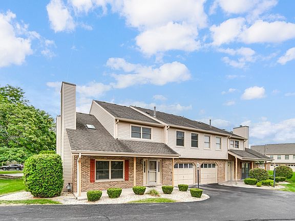Move-in ready and beautifully remodeled! This end-unit townhome in Village Square offers three bedrooms, two bathrooms, and two stories of updated living space. Step inside to find brand-new high end wood vinyl flooring, leading to a stunning two-story fireplace. A freshly updated kitchen with new cabinets, new appliances, and a stylish backsplash, along with fully remodeled bathrooms. Freshly painted throughout, added lighting, and thoughtful updates make this home shine. The generous master bedroom features a cathedral ceiling and walk-in closet, while the two additional bedrooms are also spacious and filled with natural light. Throughout the home, you'll enjoy generous amounts of lighting and an open welcoming feel, thanks to the home's desirable end-unit location. Convenience is key with first-floor laundry and an attached one-car garage. Enjoy quiet evenings on your private patio, located just off the dining and shopping area. Set on a tree-lined street, this townhome is just minutes from shopping, dining, and easy highway access, and is located within a top-rated school district. Don't miss this chance to own a home that's truly move-in ready!