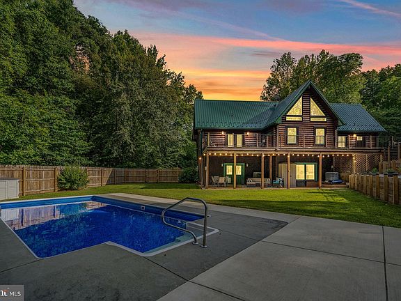 Don’t Miss this Rare Opportunity to own this Meticulously Kept, Custom Log Home on 5.27 acres! This Home checks ALL the boxes and was spared no expense on making this home simply amazing. Featuring 4 Bedrooms, 3 Full Baths, 3,628 total sq ft, 2 Detached Garages holding a total of 5 Cars with a Loft, Radiant Heat on all 3 Levels with newer Propane Boiler, Anderson Windows, New Metal Roof and a Private In-ground Pool. This Home is full of Character and Quality Craftsmanship in every direction. On the Main Level you’ll find an impressive Spiral Staircase, Gas Fireplace with Stone Hearth, Custom Kitchen with Solid Hardwood Cabinets and Granite Countertops, spacious Laundry Room and large Primary Suite with Custom Bathroom, Walk-in Closet and French Doors leading to your Backyard Oasis. Upstairs you’ll find 2 Large Bedrooms with separate office/reading nooks, Full Bathroom with a Double Sink. The Finished Walkout Basement has a Large Recreation Room, Bedroom with Walk-in Closet, and Full Bathroom. The smaller, partially unfinished area had a mini-kitchen that has since been removed. Plumbing is still in if the new owners wanted to convert it back to make the basement more of an apartment or Airbnb! The exterior features a Full Porch that Wraps Around to a Deck Spanning the Width of the Home, and an In-ground Chlorine Pool with Patio. The 5.27 acres is partially cleared and beautifully landscaped but perfectly wooded for privacy. Conveniently located for easy access to Fredericksburg, Dahlgren, and More!