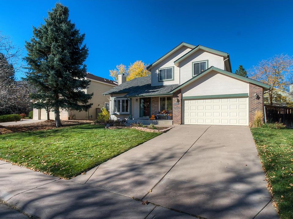Updated, turn-key home in Northridge Elementary boundary! Special features include a main level bedroom and 3/4 bath, plus 3 additional bedrooms upstairs and an unfinished basement to expand. Dark stained oak floors, restoration style light fixtures throughout, remodeled baths, updated baseboards and modern two-tone paint. Open kitchen includes painted wood cabinets, granite countertops, stainless steel appliances and an eating nook. Spacious family room is great for entertaining with a wood burning fireplace. Luxurious Master with cedar floor walk-in closet, new marble counters and a big garden tub. Large secondary bedrooms - rare find in Highlands Ranch! Other extras include main level laundry, "mud room" hallway off garage and updated systems -- brand new A/C, newer furnace & water heater and roof is 2 years old. No major projects for you! You will love the large, flat, private yard with mature landscaping and a composite deck -- a great way to enjoy outdoor Colorado living.
