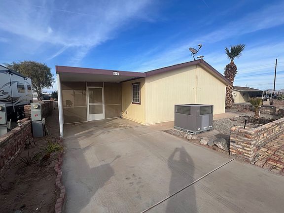 Located in Coyote Ranch 55+ Active Community: Gated community with club house, pool, activities, tennis courts. Doublewide manufactured home features 3 bedrooms, 2 bathrooms. Vaulted ceilings and ceiling fans, furnished with appliances like refrigerator, flat surface electric range, dishwasher, R/O system and water softener. Screened in Arizona room, Front covered patio. On a corner lot. Off street parking. Priced to sell!!