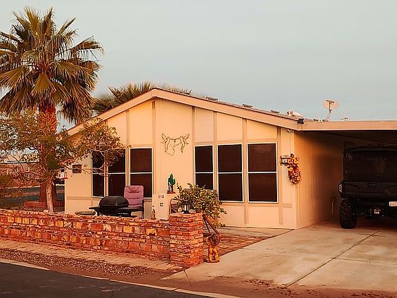Welcome to this fantabulous 2br/2bath home in the center of Coyote Ranch Manufactured Home Park. Yuma's pristine 55+ gaited community. Have your New Year's Resolution come true in sunny Yuma,AZ Now only $116,000 Location...Location...Location...lot 56--Right across from the manager's office and clubhouse. Unique home that offers both electric and gas. No expensive golf cart needed and an excellently maintained lot. See when mail comes. Sit outside and socialize till the sun goes down w/people coming to and from the club house. Easier if you want to get involved in various activities. Be always in the know as to what's going on in the club house. Walk to the pool & back in suit. Walk to the clubhouse for dances, no need to worry about drinking & driving or parking. Can use the park's wifi free. 2 carports, one on each road. Various electrical outlets. No paying for outside water usage. Wash the car & house all you want. Air conditioned shed w/electrical & shelving. Safer being close to the clubhouse w/its security camera system and fire hydrant on nearby corner. Under house pesticide spray system; no need to be here in summer as done as you set up w/company. Fully furnished; turnkey condition: washer/2 yr old gas dryer, dishwasher, gas stove, side by side fridge w/filter system for cold water/ice blocks or crushed in freezer door, reverse osmosis on kitchen sink, garbage disposal. Water softener w/3 yr old new tank, air/heat unit recently service inspected.. All maintained in excellent working order. All rooms and hallways handicap accessible.