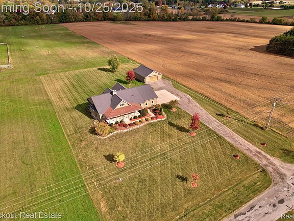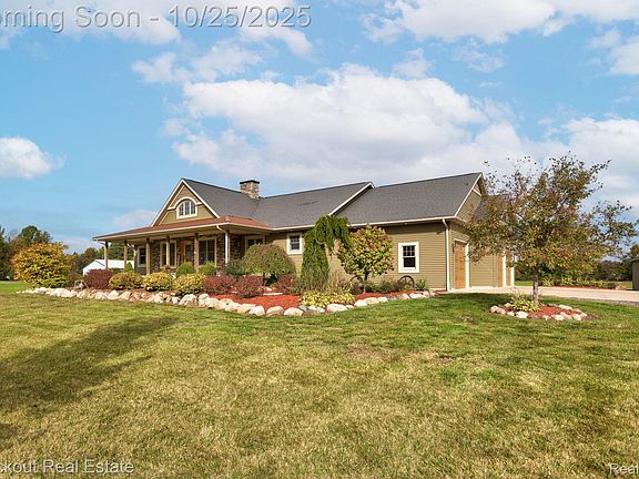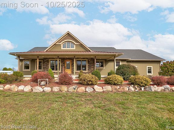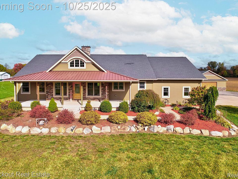 Every great story begins at home and this one on Lange Road is ready for its next chapter! Flip back to 2017, when this custom home became the newest gem in Birch Run Township. No details were overlooked with the Craftsman situated in the Frankenmuth School District, starting with its foundation constructed out of Superior Walls, its 2x6 framing and over-the-top spray, blown-in and batt insulation in the walls and attic. The landscaping has matured into being a "wow" factor, anchoring the stone and wood features that highlight the home. The meandering sidewalk leads to the covered porch, where you'll walk in the door to the real treat. Cathedral ceilings, incredible natural light, and Michigan Elm Wood hardwood floors are smash-hits! The kitchen has hammered granite countertops, knotty alder cabinets, a gas stovetop, double oven and large island that makes this place great for hosting. In fact, you could fit a 15 foot refectory table with plenty of chairs for those special dinners! The great room is spotlighted by its wall of windows that overlook the rolling farm fields and the floor-to-ceiling stone surround fireplace is a showstopper. The primary bedroom is fit for a king or queen -- a sanctuary for morning coffee or reading your favorite novel. The ensuite features heated floors, a tiled walk-in shower, jet tub and 7x12 walk-in closet. Two additional bedrooms, with large closets, are on the other side of the house and as a perk, the laundry room is on the first floor. The basement is mostly finished, with an additional two bedrooms, sewing room, living space with gas fireplace, and bar area perfect for hosting card games or watching games. There's also walk-out door to the back yard. If the three-car garage isn't enough, you'll love the 32x40 pole barn with 100 amp service to store your toys. The home has a stand-by Generac and even a central vacuum. It's not often that a home like this makes itself available, so flip to today and make the next chapter yours!