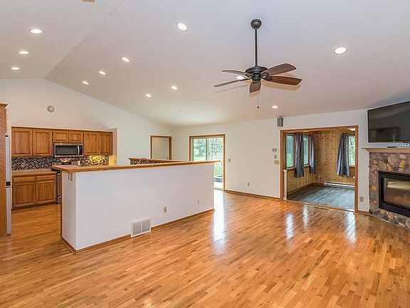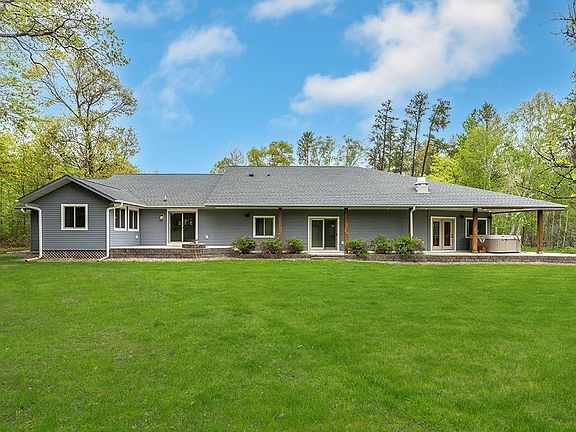 This exceptional property is nestled on 2.5 acres of park-like grounds offering the perfect blend of space, luxury & convenience. This meticulously maintained 4BR-4BA home highlights an array of desirable features that will exceed your expectations. You will fall in love with the serene setting. Features include a welcoming covered porch entry; spacious kitchen with SS appliances-cathedral ceiling-breakfast bar-hardwood floors; informal dining area; living room w/stone FP; 4-season porch; patio w/propane fire pit; owner’s en-suite w/custom tiled shower; incredibly designed walk-in closet; 2 add’l BR on main level; spacious mud/laundry room off the oversized 3 car heated garage. The lower level offers a large theatre room; FR w/craft–game area; add’l BR & great storage. The Main Attraction is the attached “Man Cave” showcasing a huge center island, multiple Flat Screen TV’s, custom cabinetry, indoor grilling station; surround sound; a hot tub, in-floor heat…entertaining at its finest!