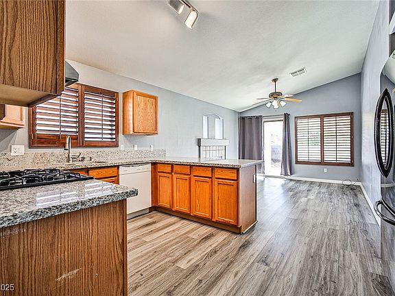 Prime Southwest location with easy access to I-215, and close to shopping, restaurants, and banks. This charming single-story home sits quietly at the end of a cul-de-sac and features 3 bedrooms, 2 baths, and an attached 2-car garage. The home offers beautiful newer flooring (no carpet) and fresh paint throughout. The spacious front living and dining area features vaulted ceilings that enhance the open, airy feel. The open kitchen provides ample cabinet storage and a breakfast bar peninsula overlooking the cozy family room with a gas fireplace and sliding glass door leading to a private backyard oasis. Enjoy outdoor living under the full-length covered patio perfect for relaxation or gatherings. Plantation shutters on all windows help maintain privacy and energy efficiency, making this home both comfortable and practical. This is a courtesy listing and will be owner-managed. All applications are reviewed Monday through Friday, with the lease commencing within 10 days of approval.