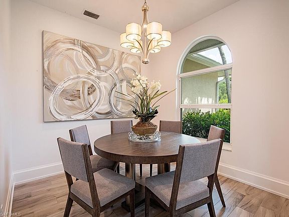 A beautiful home Located on an oversized lot, offers an open floor plan with 3 bedrooms pus a den, 3 full baths. One will enjoy a true gourmet kitchen, equipped with wolf oven, cooktop, steam oven, microwave, Subzero refrigeration, 2 refrigerator drawers, Uline wine cooler, 2 Bosch dishwashers and a “clear ice” Scotsman icemaker. The home opens to an expansive outdoor area featuring a pool, spa and firepit. The open style floorplan lends itself to Florida living and is the perfect setup for entertaining. Roof 2018 A/C 2019, remodeled Kitchen, floors, guest bath, laundry completed 2020, hurricane impact windows, doors, and garage 2021. Very Desirable North Naples location in Four Seasons with NO HOA fees, close to beach, shopping, dining, night life and an excellent school district.
