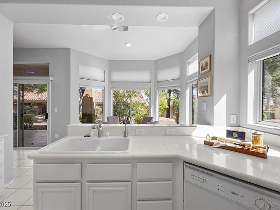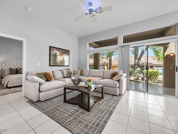 Start Your Next Chapter in Sun City Summerlin. Welcome to this Grafton model, where a private, pet-friendly courtyard sets the tone for comfort and connection. Inside, the split floor plan offers privacy with 2 bedrooms and 2 baths, both with walk-in showers. A bright kitchen, soaring ceilings, and abundant windows create a light-filled atmosphere, while the spacious primary suite includes a large walk-in closet. An additional flex room provides versatility, perfect for an office, mudroom, storage, or a small cardio space. Step outside and discover a 55+ community designed for active living—golf, pools, fitness centers, and countless clubs—live your best life at 9352 Villa Ridge Drive.