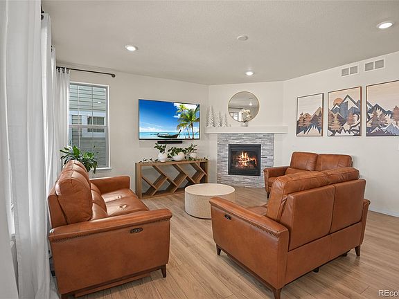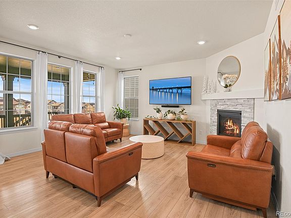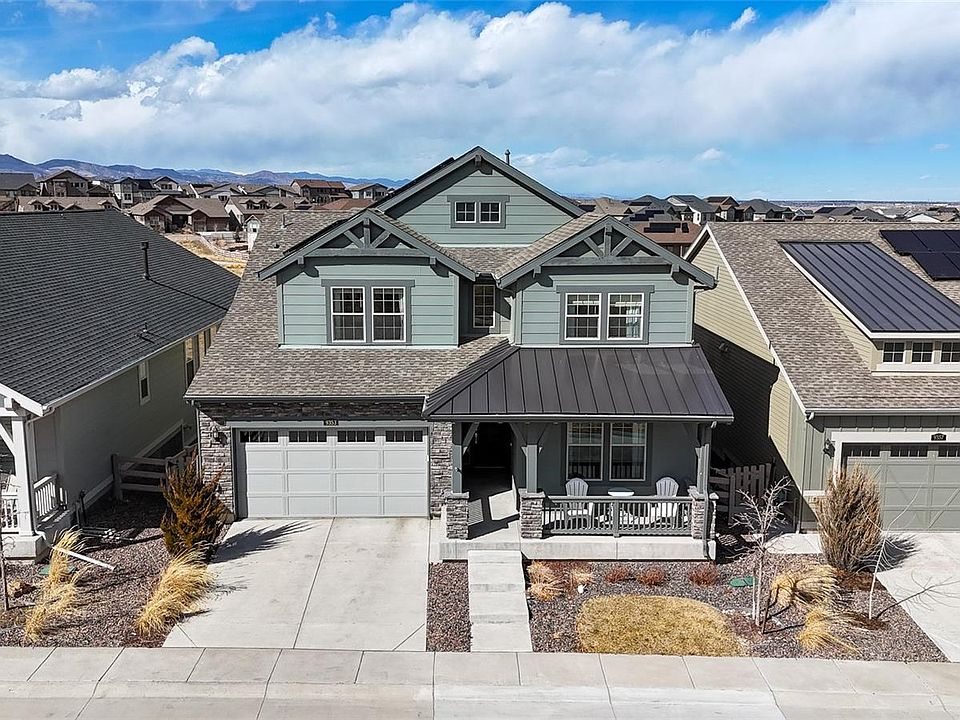 Welcome to your dream home in the highly sought-after Sterling Ranch community! This stunning Brookside Lennar floor plan offers the perfect blend of functionality and luxury, making it ideal for multi-generational living.As you step inside, you'll be greeted by the inviting Nanny suite, featuring a spacious bedroom, flexible living area or office space, a convenient kitchenette, and a full bathroom, all complemented by a dedicated laundry closet for added convenience.The main home boasts an open floor plan adorned with high-end finishes throughout. The kitchen is a chef's delight, boasting beautiful white cabinetry, quartz countertops, an island for additional prep space, and a charming eat in area perfect for casual dining. Overlooking the kitchen is the lovely living room, complete with a cozy gas fireplace, creating the perfect ambiance for gatherings and relaxation.Upstairs, discover three additional bedrooms plus with a primary suite, complete with an en suite bathroom and a generously sized walk-in closet, providing a private oasis to unwind after a long day.The finished basement offers even more space to entertain and unwind, with a large game room, secondary living area, and walkout access to the backyard. Additionally, you'll find ample storage, a convenient bathroom, and an exercise room, ensuring there's something for everyone in the family.Outside, the low-maintenance backyard offers picturesque views of the surrounding open space and mountains, providing a serene backdrop for outdoor enjoyment and relaxation. Sterling Ranch itself offers a plethora of amenities, including neighborhood parks, a pool, clubhouse, bocce and cornhole courts, as well as the convenience of a local coffee shop and brewery. Plus, with easy access to hiking trails, state parks, restaurants, and more, you'll have everything you need right at your fingertips. Don't miss out on the opportunity to make this incredible home yours!
