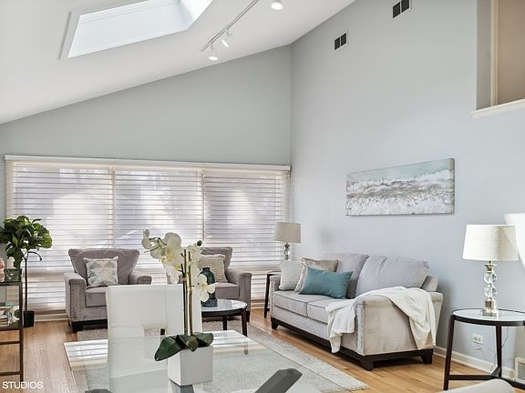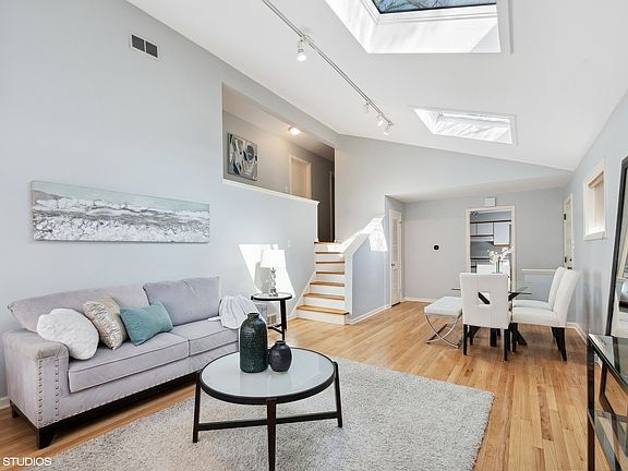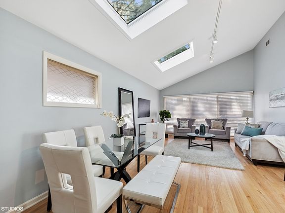 Welcome to this charming 3-bedroom, 2-bath home on a serene, tree-lined street! This bright and airy home has been extensively remodeled and upgraded to the highest of standards. The first floor living and dining room features gleaming hardwood floors, vaulted ceilings, and 2 large skylights that flood the space with light. Just around the corner is the bright eat-in kitchen which features an under-sink kitchen water filtration system along with a garden window box, Hardwood floors can be found in all 3 of the bedrooms. The lower level with brand new carpet, is the perfect family room hang out spot. The property also features many modern amenities such as dimmable LED lighting, motion detectors for the kitchen lights, child-safe electrical outlets, new HVAC, water heater, and an Alexa/Ecobee thermostat. Head outside to find a new roof, siding, and gutters on both the house and garage. The backyard has been beautifully landscaped, featuring privet bushes, and a Japanese maple. Additional features include a waterfall and organic peach and cherry trees. Benefit from Skokie taxes and Evanston schools, with the best playground in the Evanston/Skokie area just a 6-minute walk away. *The home also offers the potential for further customization, with plans drawn by an architect for a cathedral ceiling in the kitchen and the removal of the dining room wall to create a breakfast nook seating area.